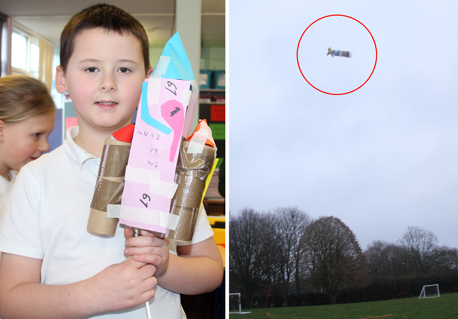In the Spring term, we embarked on a project to design, build, test and develop our own bottle rockets. We tried out a range of bottle sizes, materials, wings, nose cones and boosters, and blasted them into the sky them all with an air-powered launcher. We were amazed by how high and how far some of them flew - they went far higher than the roof of the Hall, and some of them landed at the other end of the field!