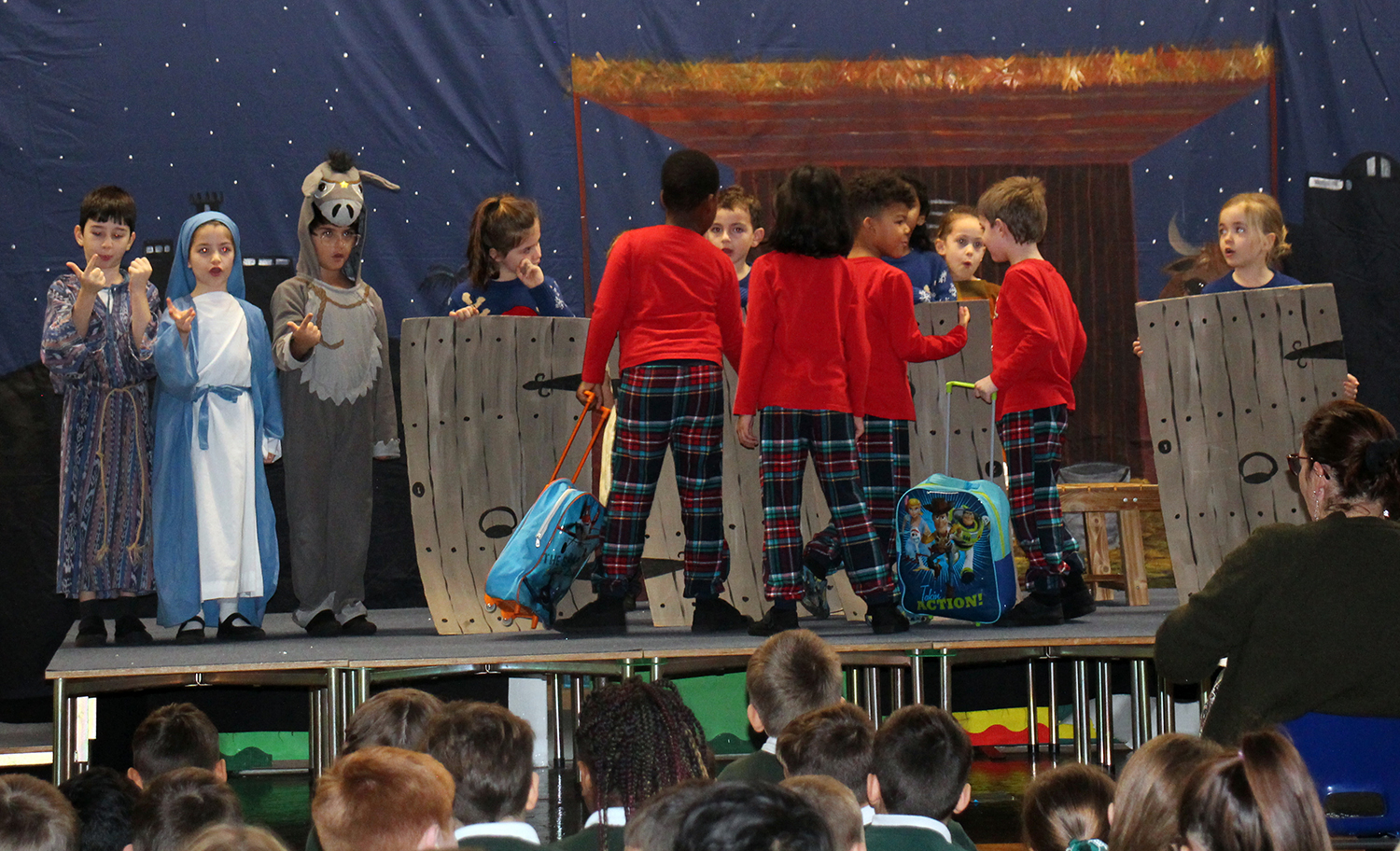 The narrators told the story really clearly, Mary, Joseph and Donkey linked everything together, our stars, shepherds, innkeepers and wisemen all knew exactly where to be and the performing sheep kept stealing the show! We sang, we danced and we even got some laughs with our knock-knock jokes. We hope that you will agree that Knock Knock was a great way to retell the Christmas story.